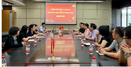 为深入学习贯彻党的十九大精神,进一步落实新时代党建工作的新要求,拓展校企合作新领域,2019年6月25日上午,交通银行软件开发中心党总支与学院计算机联合党总支联建联学签约仪式在嘉定校区智信馆305室举行。学院党委书记童学锋、党委副书记董变林、计算机科学与技术系党政班子成员以及教工支部书记代表,交通银行软件开发中心(上海)副总经理孙莉、综合管理部高级经理刘衍红、开发六部高级经理虞笑韵、开发六部副高级经理童蕙等党员代表出席会议。