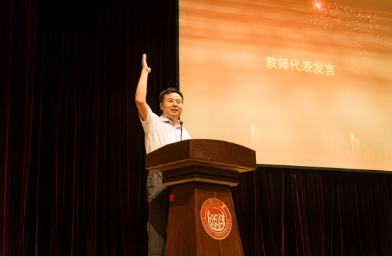 教师代表岳继光老师吟诵了一篇《同济,让电信学子的生命永远高贵》,亲切而深情地给予毕业生们谆谆教诲,引起同学们的阵阵欢呼与掌声。