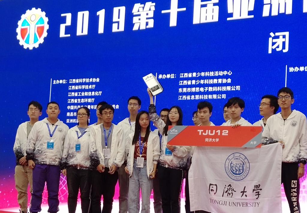 2019年10月17日-2019年10月20日,我校VEX参赛队参加了2019第十届亚洲青少年机器人锦标赛。本次我校派出2支队伍参赛,参赛队员经过辛苦比赛,最终TJU1队获得技能赛亚军,TJU12队获得资格赛第一名,总评全能奖(最高奖)并获得参加2019-2020赛季世锦赛资格。