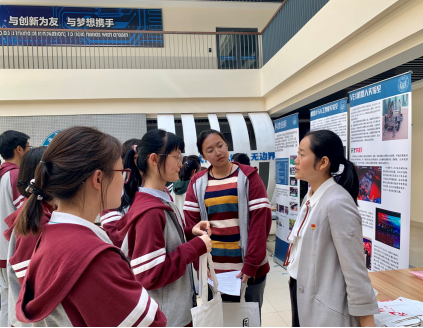 的科技创新优秀项目,并针对机器人技术、科研项目规划、专业选择、自主招生、录取咨询、征兵政策等同学们关注的热点问题进行了解答,现场气氛十分热烈。