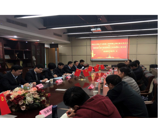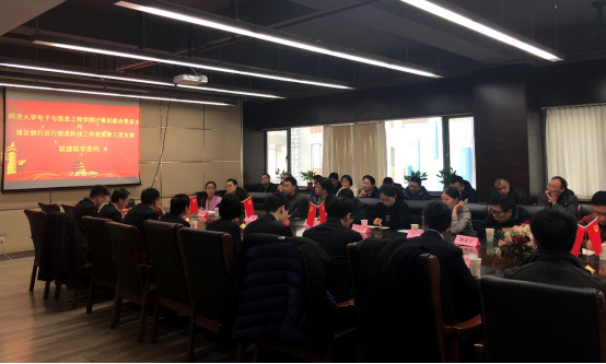 在当前“不忘初心、牢记使命”主题教育的背景下,在践行“三全育人”理念的实践中,2019年12月3日下午,学院计算机联合党总支与浦发银行总行信息科技工作党委第三党支部联建联学签约仪式在嘉定校区智信馆305室举行。此次共建签约活动也是计算机联合党总支教工第三支部的一次特殊组织生活,活动由支部书记张冬冬主持。学院党委副书记向阳(主持工作)、计算机联合党总支委员、教工第三支部全体党员以及部分学生党员代表,浦发银行科技部副总经理张国栋、吴德柱(第三党支部书记),陈仲肃(第三党支部副书记)等党员代表出席会议。