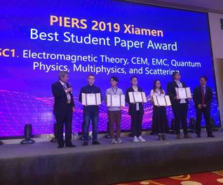近日,电子科学与技术系研究生陈子若,谢峰,张允晶三位同学受邀参加在厦门举办的著名国际学术会议“The42th Progress in Electromagnetics Research Symposium (PIERS)”(第42届电磁学研究进展国际会议)。三位同学在专门设置的“Oral Presentationsfor Best Student Paper Awards”(最佳学生论文奖口头报告)分会场作了各自的口头报告,受到竞赛评委和听众的好评,事后被多位国际著名教授誉为“interesting work”及“excellentjob”。这些论文是在系主任童美松教授精心指导下完成并在今年7月份投稿、9月份正式接受的。论文内容事先经过三位专家盲审,入围后再由第一作者(学生)在分会场作口头报告,评委由三名相关领域的国际著名学者担任,他们根据论文内容的盲审结果和现场口头报告及答辩质量进行打分评审。