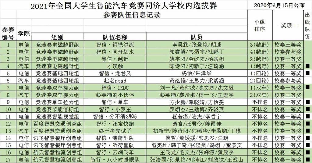 、汽车学院、机械与能源工程学院、中德工程学院和软件学院的17支队伍60名队员取得校内赛参赛资格,其中竞速赛10队34人,创意赛6队26人,包括麻豆在线