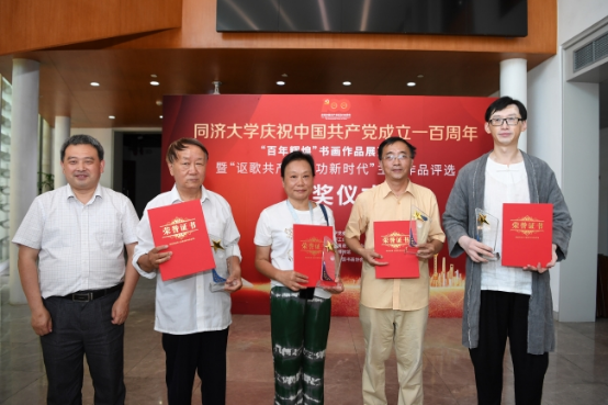 “百年辉煌”书画作品展开幕式暨“讴歌共产党 建功新时代”庆祝建党100周年主题作品征集活动颁奖仪式在四平路校区博物馆举行,我校党委副书记、工会主席吴广明出席并致辞,校党委常委、宣传部部长朱大章,校工会常务副主席宋建华,校妇女工作委员会常务副主任肖辉,校离退休干部党工委书记、离退办主任徐讴平,嘉定校区党工委副书记覃文忠,沪西北校区管委办主任徐纪平,校教工中国书画协会会长江理平等领导和嘉宾出席。