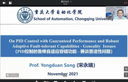 宋永端教授分别从PID控制的背景、PID控制的理论发展历程、PID控制新方法设计和应用等方面展开报告。报告中,宋教授首先介绍了PID控制的背景和早期理论成果、PID控制中隐含的智能和其在工业控制中的影响。然后进一步介绍早先和目前PID控制器的参数调节方法及其存在的问题与不足;接着对具有鲁棒自适应和容错能力装备PID控制新方法进行详细的分析,分别介绍系统模型转换、自适应鲁棒控制器的具体设计。对多入多出模型下方系统和非方系统的PID控制设计控制算法并给出数学证明。最后对提出的PID控制器新设计方法进行实际例子的验证,通过在实际机器人系统上的仿真和比较验证提出方法的有效性。宋永端教授丰富精彩的报告为学校师生的学习和科研工作带去了思想启发。