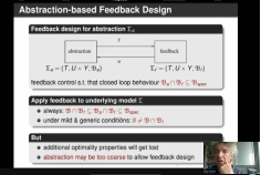 Joerg Raisch教授分别从反馈的需求、正式模型的需求、预测能力的牺牲以及标准代数的牺牲等方面展开报告。首先,Joerg Raisch教授介绍了什么是控制、什么是反馈,指出控制的目的、控制问题以及反馈控制的特性。然后,Joerg Raisch教授介绍了正式模型以及模型自由度的选择对于系统性反馈控制设计的重要性。接着,详细介绍了抽象和细化的概念和表达,构建基于抽象的反馈设计并将其应用于考虑的原始模型,并利用一个实际案例进行验证。而后,Joerg Raisch教授以一个玩具案例介绍了同步和延迟。对同步进行建模并且给出由时间事件图建模的关系。最后介绍了幂等半环的定义和性质以及在矩阵上的运算,并将其应用前述玩具的案例分析其系统模型。Joerg Raisch教授丰富精彩的报告为学校师生学习和科研工作带去了思想启发,也为同学们了解反馈控制的模型提供了有益指导。