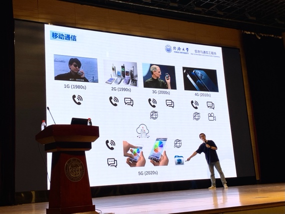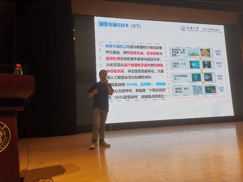 首先,王超教授介绍了信息与通信技术的基本概念,让学员们对本系的研究领域拥有基本的认识。信息与通信技术是以数学、物理和计算机软硬件为基础,研究信息生成、信息传输与信息处理系统的基本规律与相互关系,从而实现从设计制造电子器件到构建复杂信息系统,并支撑信息数字化、大数据人工智能全方位创新的学科。随后,王超教授以摩尔斯码这一古老的通信方式为切入点,向同学们展示了信息传递的基本原理及通信发展的历程。从摩尔斯码到有线通信再到无线通信、移动通信,从1G逐步发展至如今的5G通信,以更好地应用于自动驾驶、数字孪生、全息通信、感官互联等场景,可以清晰地看到信息与通信技术在推动人类社会进步方面的巨大作用。讲座最后,王超教授针对自动驾驶中的通信技术进行了专业且趣味的分享,借助信息与通信技术中的传感器、通信系统和人工智能等先进技术,实现了车辆的智能化和自主化,为我们带来了更安全、高效和便捷的出行方式。