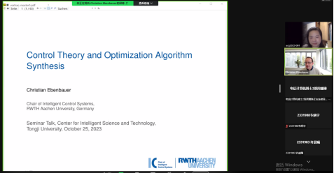 2023年10月26日晚,由学院、上海自主智能无人系统科学中心联合举办的智·信讲堂第58期在线上Zoom开讲。本次讲堂邀请德国亚琛工业大学Christian Ebenbauer教授作“Control Theory and Optimization Algorithm Synthesis”主题报告,由张皓教授主持。