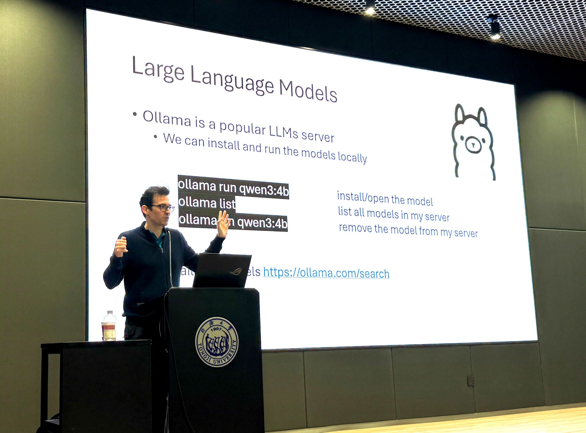 在此报告中,Jordán副教授深入浅出地阐释了大型语言模型(LLMs)的基础原理及其核心运行机制。他主要介绍了关于LLMs易于掌握的基础知识,详细介绍了人工智能系统的关键原则,并分享了在本地部署运行模型的实用技巧,帮助参会师生理解了现代AI模型的底层架构和行为模式。此外,Jordán副教授还重点介绍了AI智能体(AI Agents)的概念,并演示了如何利用无代码平台快速创建和配置这些智能体。这些智能体展现了强大的自动化潜力,能够无缝融入日常任务流程。
