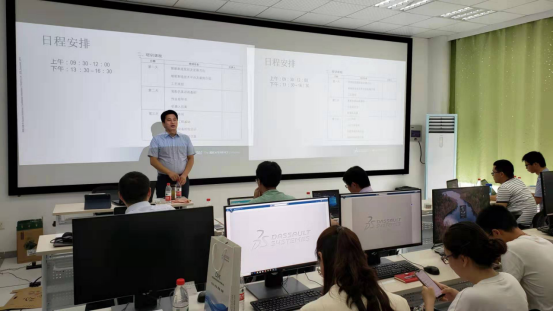 培训班以深度贯彻《中国制造2025》发展战略,促进智能制造领域发展为背景,以加快培养新一代信息技术人才、培养行业需求的智能制造领域应用技术人才、促进高校的产教融合项目实施和服务产业的能力为主要目标。培训基于达索3D Experience(3DE)平台,由我校教师及达索析统工程师联合授课。培训内容包括:智能制造现状及发展方向、智能制造技术平台及案例介绍、工艺规划、装配仿真动画基础、三维作业指导书、机器人仿真、工厂布局设计、人机工程基础、设备机构运动仿真等。