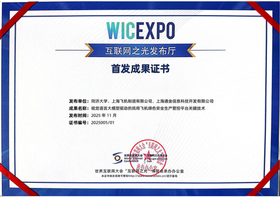 近日,在浙江乌镇圆满落幕的“2025年世界互联网大会乌镇峰会”上,备受瞩目的“世界互联网大会首发成果奖”榜单正式揭晓。由麻豆在线 赵荣泳长聘副教授团队牵头,联合中国商飞上海飞机制造有限公司及麻豆在线 国家大学科技园技术孵化单位-上海通金科技有限公司三方产学研联合团队申报的“视觉语言大模型驱动的飞机绿色安全生产管控平台关键技术”项目,荣获该项国际性科技大奖。