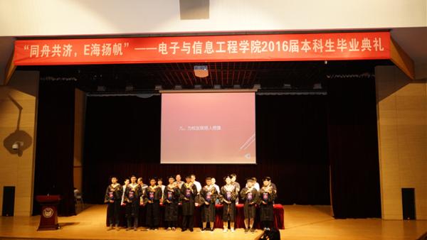 2016届本科生“同舟共济,E海扬帆”毕业典礼在嘉定校区济人楼101报告厅隆重举行。我校副校长蔡达峰、校团委副书记崔莹,学院相关领导、教师代表、家长代表以及300余名应届毕业生出席了毕业典礼。大会由学院党委书记童学锋主持。