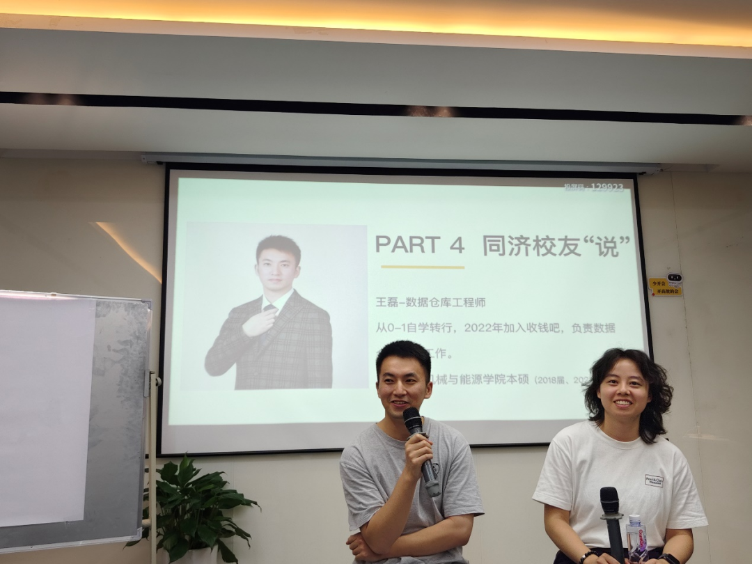 王磊学长是2021届土木工程毕业生,22年加入收钱吧从事数据仓库工程师,实现了从0-1自学转行。他分享了自学计算机的经验并从转行经历上劝勉同学们,本研阶段不要随波逐流,要找到兴趣与能力匹配的方向。