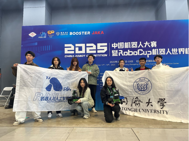 机器人与人工智能实验室TJArk团队派出的两支队伍表现优异。该团队以电信学院学生为主,汇聚了三个学院的优秀学子,由控制系陈启军、刘成菊老师指导,并由学生罗烨(自动化)、任筱舒(人工智能)及张旭晖(控制科学与工程)辅助管理。其中,TJArk-Moon-CE队勇夺全国冠军(全国一等奖),队长为丁宁(人工智能),队员包括张静敏(计算机科学与技术学院/数据科学与大数据技术)、王韵涵(计算机科学与技术学院/计算机科学与技术)、李沛澍(国豪书院/微电子科学与工程);TJArk-Moon-YT队获全国三等奖,队长为和亚琦(计算机科学与技术学院/计算机科学与技术),队员包括刘诗怡(计算机科学与技术学院/数据科学与大数据技术)、徐亦栋(自动化)、寇筱然(电气工程及其自动化)。