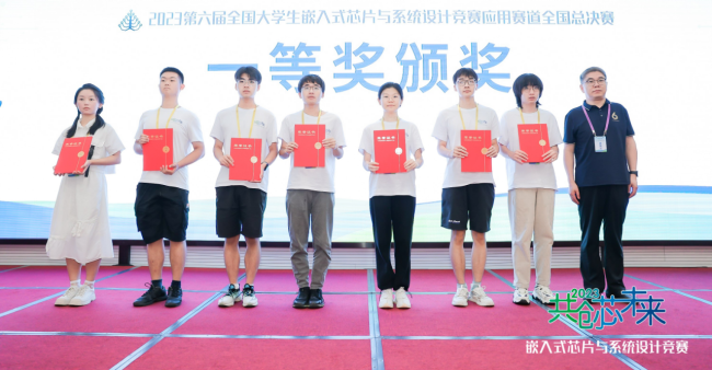 2023年8月18日上午,历时3天的第六届全国大学生嵌入式芯片与系统设计竞赛应用赛道全国总决赛成功举办,闭幕式暨颁奖典礼在南京集成电路培训基地举行。麻豆在线 四支本科生队伍由控制科学与工程系徐和根老师、张志明老师带队参赛,队员在总决赛中表现出色,取得全国一等奖1项,二等奖1项,三等奖2项,获历史最好成绩。