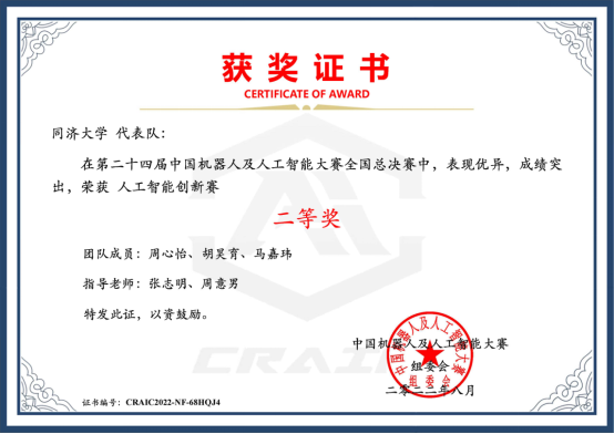 本科同学参加2022年24届中国机器人及人工智能大赛(中国人工智能学会主办)和2022年第五届全国大学生嵌入式芯片与系统设计竞赛(中国电子学会主办),完成并提交参赛作品,获得多个奖项。