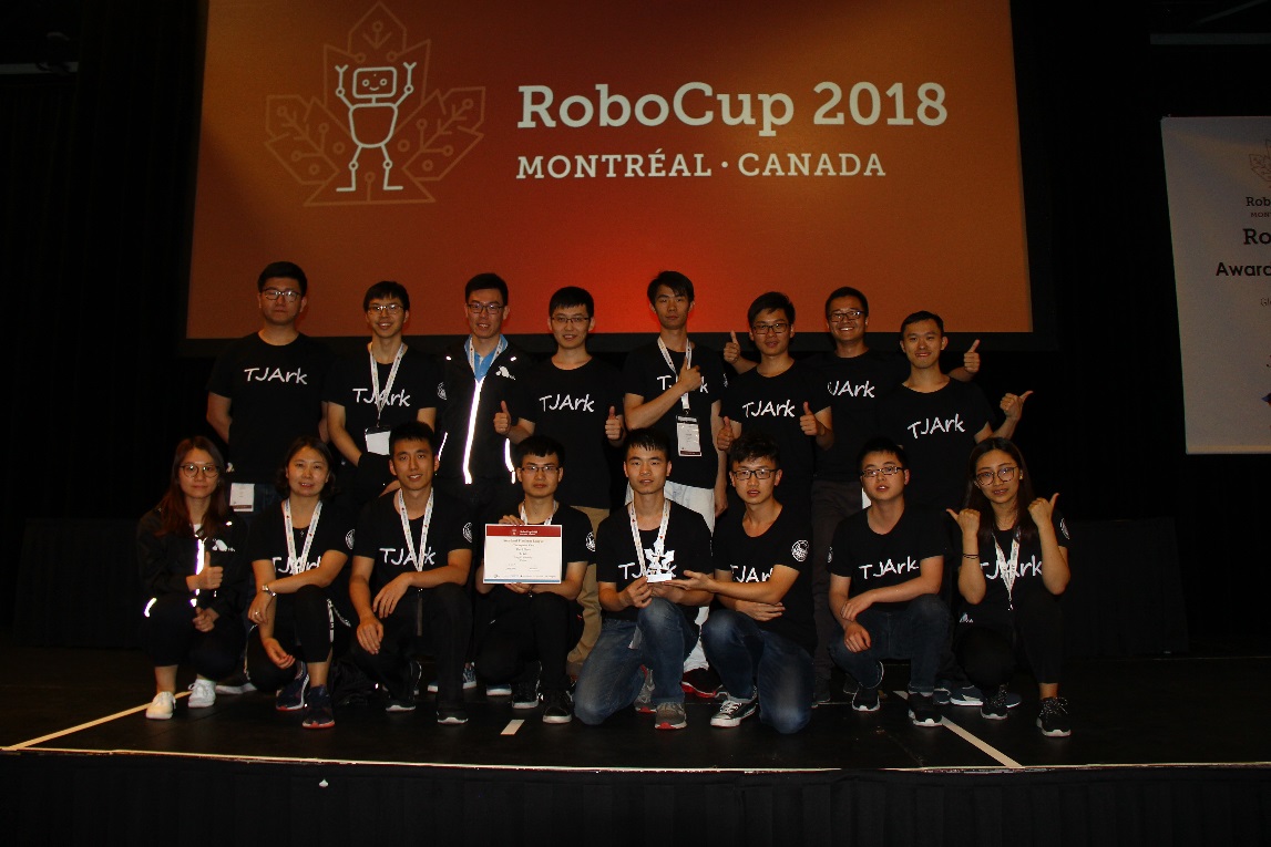 在本次蒙特利尔RoboCup机器人世界杯标准平台组中,共有来自世界各地的23支队伍参加。在正赛开始后的23进12的第一轮小组赛中,TJArk首战告捷,以5:0的优势比分战胜宾夕法尼亚大学队,但随后遭遇卫冕冠军德国不莱梅大学队,最终获得一胜一负,以小组第二进入第二轮小组赛。在第二轮小组赛中,TJArk继续稳定发挥,以大比分5:1战胜智利大学队,随后0:0战平柏林洪堡大学队,最终以一胜一平的成绩,在净胜球优势上力夺小组第一,率先出线8强。在之后四分之一决赛中,TJArk迎战实力强大的德克萨斯大学奥斯汀分校机器人队,又以5:1大比分战胜,挺进半决赛。在半决赛中再次遭遇卫冕冠军队,经过激烈的对抗最终不敌,止步本次世界杯征程。在随后的季军赛中,TJArk对战同样在半决赛失利的汉堡大学队,最终以2:0战胜对手,成功夺得了此次RoboCup机器人世界杯的第三名,展现了强大的技术实力与竞技能力,同时也创造了TJArk在机器人世界杯上的最好历史成绩。