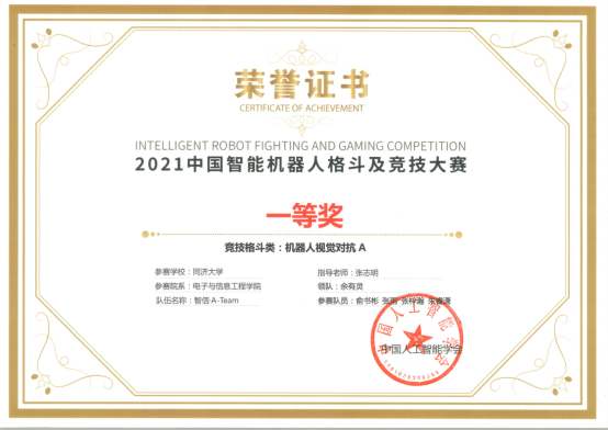 由中国人工智能学会主办的中国智能机器人格斗及竞技大赛决赛设置3大类近10个项目,吸引来自全国200余所高校的近600余支队伍参与,推动AI、机器人技术在广大青年中的快速普及和发展。由控制科学与工程系教师张志明和余有灵指导,经过激烈的角逐,在“仿人体感格斗”和“机器人视觉对抗”两个项目下各有来自人工智能+机器人竞赛实验室的两支队伍进入决赛。四只队伍在决赛中表现出色,其中:“机器人视觉对抗”赛项中,金屹阳(大三,自动化)、刘一凡(大三,自动化)、罗翊杰(大三,自动化)组成的“智信•三足鼎立”队获得一等奖(冠军),俞书彬(大二,机械设计制造及其自动化/机械学院)、张雨(大二,电子信息工程)、张梓瀚(大二,软件工程/软件学院)、朱睿潇(大二,数学与应用数学/数学学院)组成的“智信•A-Team”队获得一等奖;“仿人体感格斗”赛项中,张登煌(大三,自动化)、胡蓬(大三,自动化)、李昊霖(大三,自动化)组成的“智信•钢铁洪流”队获得一等奖(季军),姚宇阳(大三,通信工程)、杨怡(大三,自动化)、梁伊雯(大三,软件工程)组成的“智信•C”队获得一等奖。